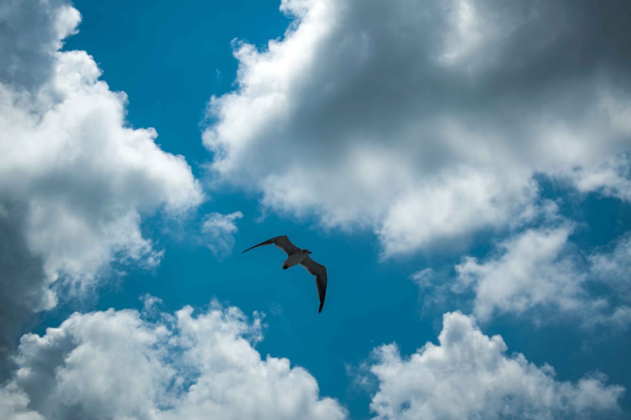 Seagull, affectionately AKA Beach Chicken, flies over head with the bright and dark cloud formations behind it. I am appreciating the difficulty of capturing wildlife. The light is never right, you have to be ready at a moments notice, and they surely don’t sit still while you get set up. Just happened to get lucky and capture this guy as he was flying overhead.