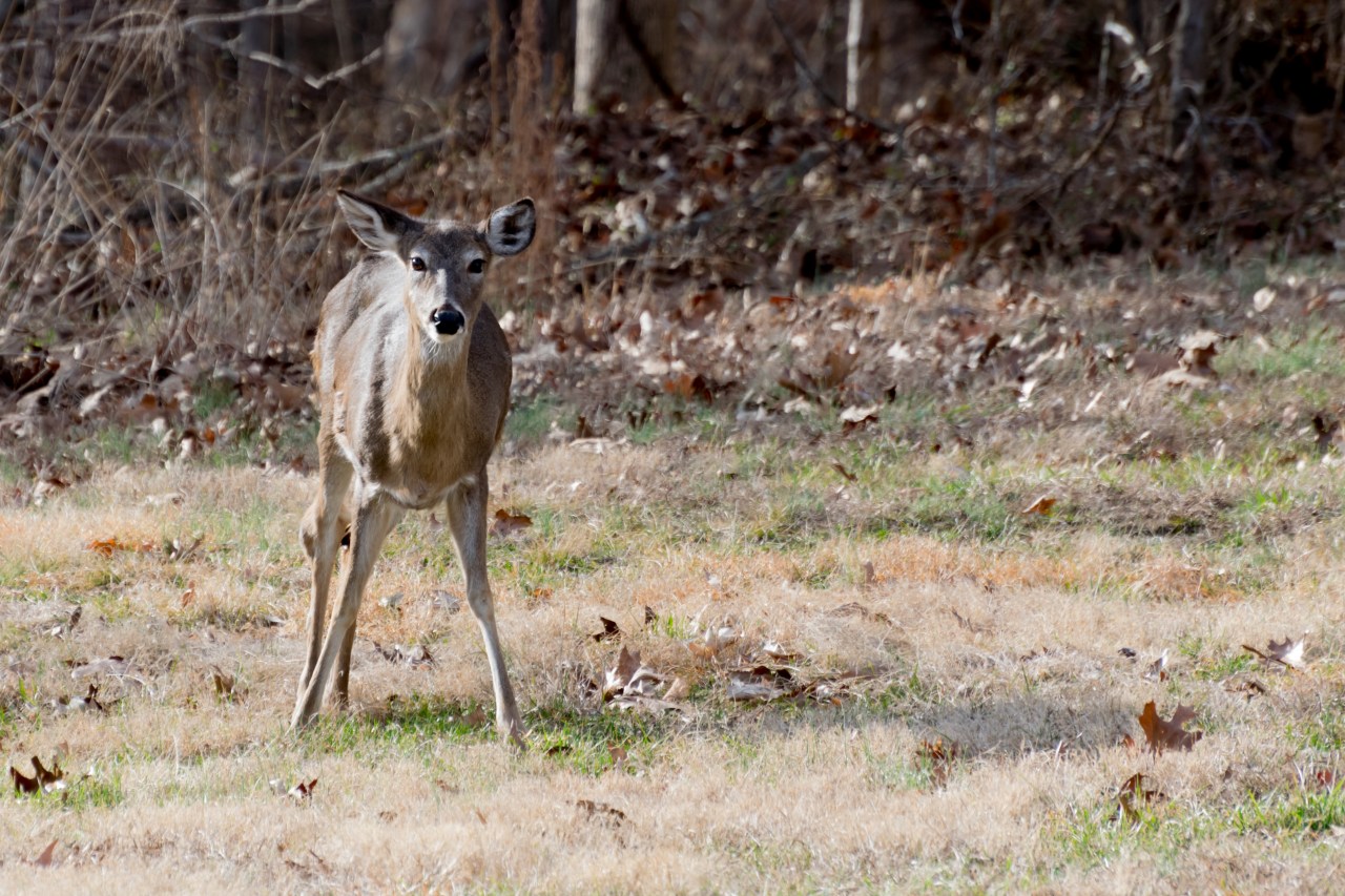 Again spotting me and keeping an eye on me. Don’t worry she wasn’t being harrassed at all. She kept grazing and eating. If you havent been around deer even when they’re relaxed they are edgy. The detail on her ruffled fur and the catch light in her eye make this one of my favorite deer pictures to date. It has good focus, its sharp, and a cute subject.