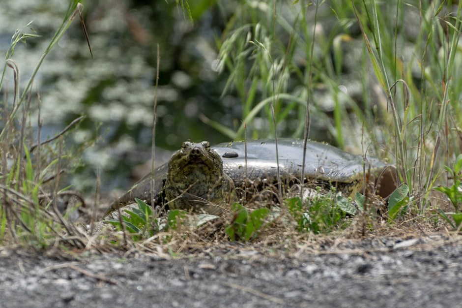 Then on the way out I spotted this guy. Sunning himself on the edge of the bank. I’m glad I snapped this one when I did. As I opened the door, with a quickness not expected from a turtle, with a familiar splash it was gone back to the depths.